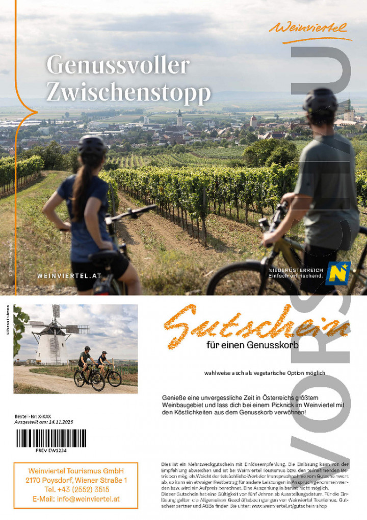 Der Weinviertler Genusskorb bietet alles, was man für genussvolle Stunden in der Natur braucht. Nach Herzenslust kann geschlemmt werden.