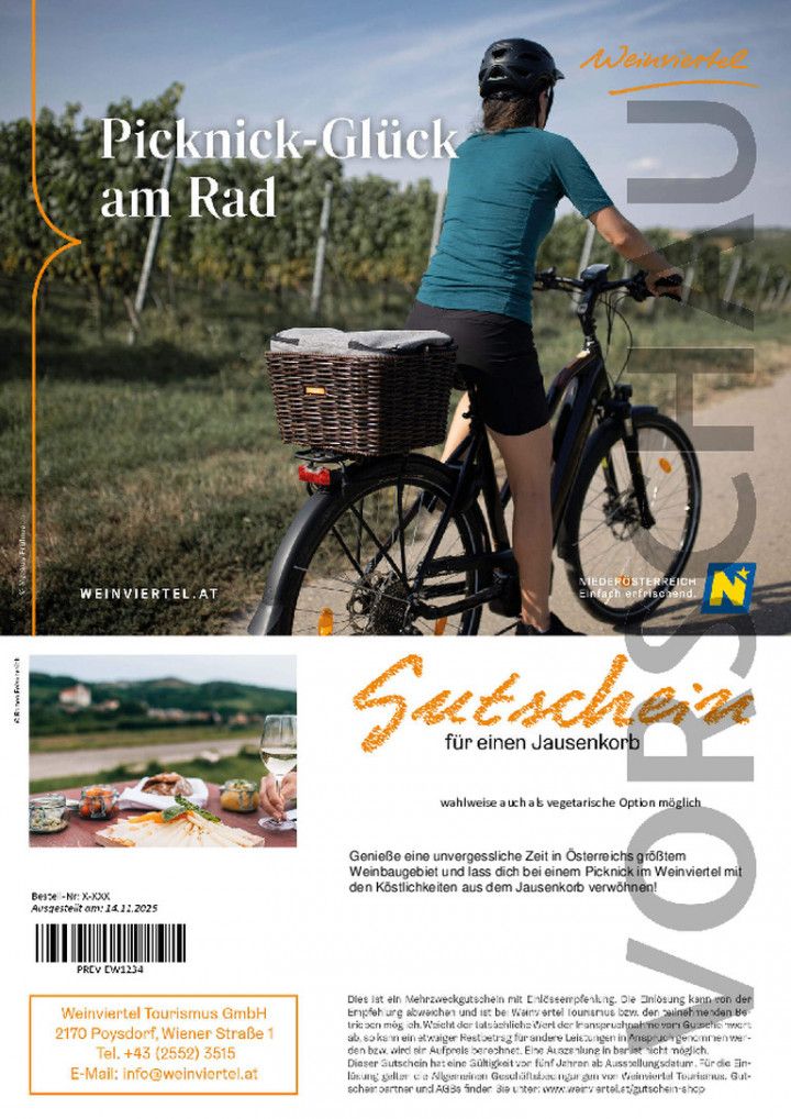 Der Weinviertler Jausenkorb ist die ideale Begleitung für eine Auszeit im Grünen und sorgt für eine entspannte Pause bei Wanderungen, Radtouren & Co.